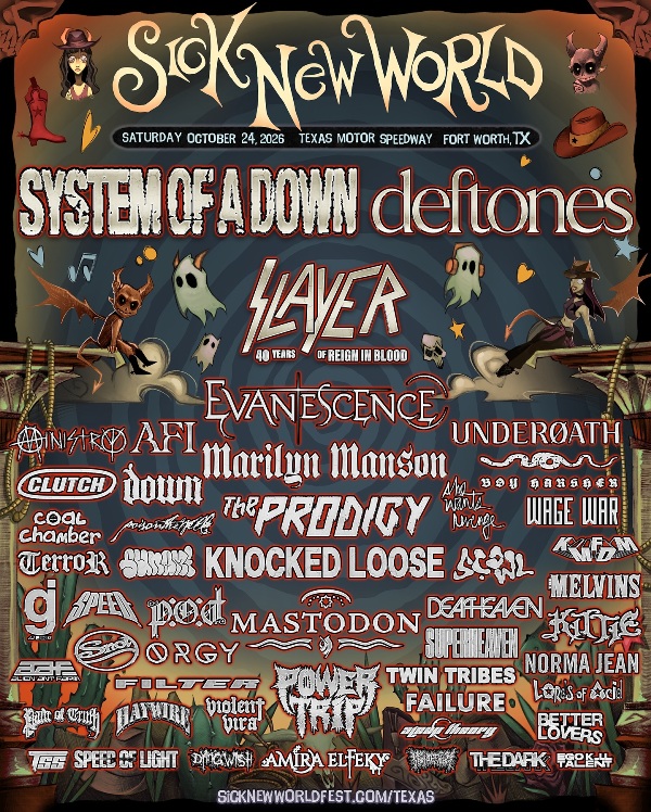 The official lineup for the 2026 edition of the Sick New World festival have been revealed. While previous editions of the festival were destination spots held in Las Vegas, next year’s installment will see the event expand to Fort Worth, TX. Both dates will be headlined by System of a Down and feature some crossover in lineups with some variations. You can find all confirmed artists below.