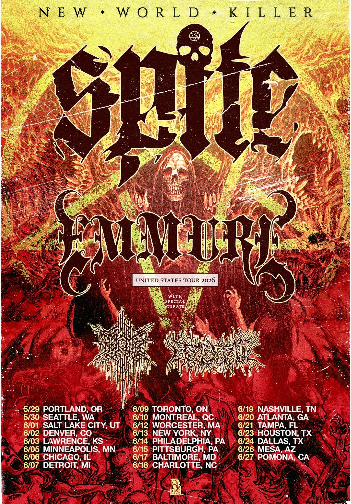 Spite have announced a headlining tour of North America in support of their latest full-length New World Killer. Joining them on the run will be Emmure, Psycho-Frame, and Reverent. Tickets will be available this Friday, January 9th at 10:00 AM local time at this location.