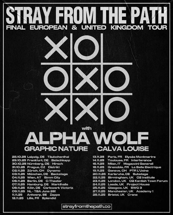 Stray From The Path have booked what will be their final tour of Europe and the U.K. Supporting them on the run will be Alpha Wolf, Graphic Nature, and Calva Louise. Tickets go on sale this Friday, June 13th at 11:00AM local time. Dates can be found below.