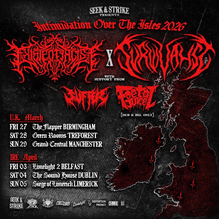 Survivalist and Existentialist join forces for The Intimidation Across The Isles Tour in spring 2026. The run will see the bands cross the UK and Ireland, joined by close friends Suffer on all dates, with death metal legends Foetal Juice appearing in Belfast and Dublin. These shows mark Survivalist’s only Irish headline performances of 2026, with more announcements and surprises still to come.