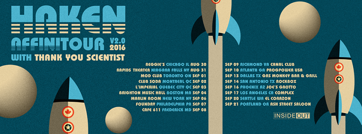 Progressive rock/metal outfit Haken have announced a summer North American tour with Thank You Scientist dubbed the Affinitour v2.0. The run will see the pair hitting the following stops: 8/30…