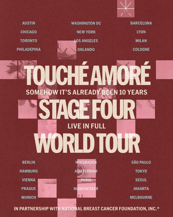 Touché Amoré have shared dates for a world tour celebrating the 10th anniversary of their fourth record, Stage Four. Additional dates are in the works. Tickets for the dates below go on sale this Friday, October 31st at 10:00 AM local time.