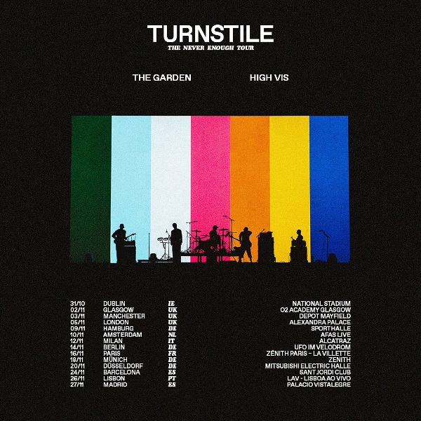 Turnstile will be returning to Europe this Fall four another round of dates in support of their latest outing, NEVER ENOUGH. Joining them on the trek will be The Garden and High Vis. If you’re interested in early access tickets you can get information by joining Turnstile’s newsletter via their webite, turnstilehardcore.com.