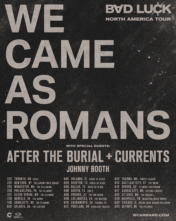 We Came As Romans will support the new album with their massive Bad Luck World Tour, the North American leg of which kicks off on July 22nd in Toronto and culminates in what is sure to be a historical homecoming when they play legendary venue, The Fillmore in Detroit on August 23rd, the day after the album is released. The tour then heads to Europe and the UK in the fall. The band will also appear at major festivals including Warped Tour, Inkcarceration, and When We Were Young.