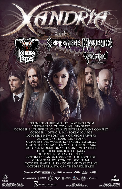 Xandria will embark on a headlining tour of the U.S. this fall with support provided by Kobra And The Lotus, September Mourning, and Worhol. Worhol vocalist Ashley Worhol said of the run:
